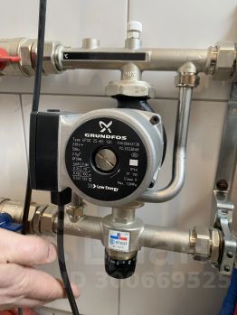 Отопление -газ. Первый этаж-теплый пол, второй -радиаторы. Котел 2-х контурный, пр-во Корея.