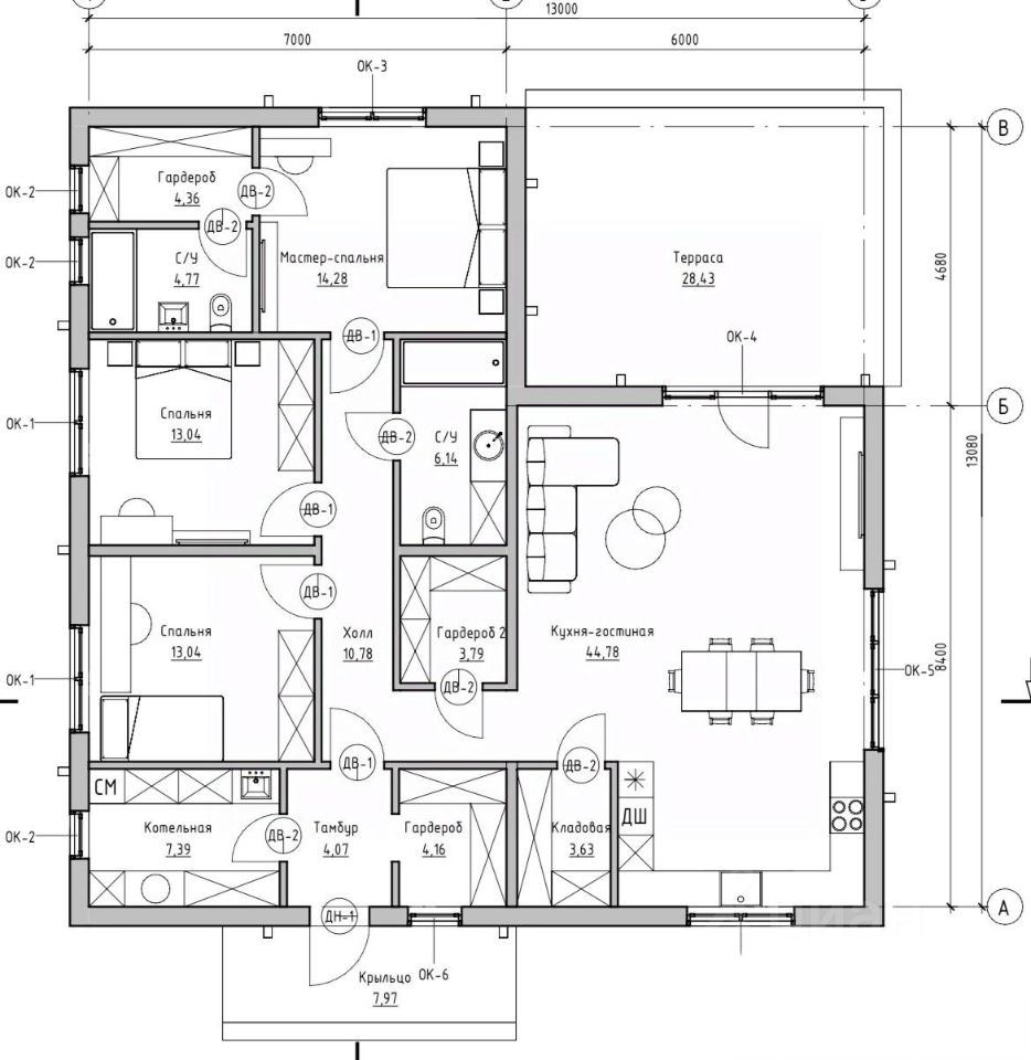 Просторная 36,3 м2 кухня-гостиная квадратной формы, с выходом на террасу и панорамными в пол окнами (VEKA), имеет свою кладовую. Три спальни по 13,5 м2, одна из них мастер-спальня со своим санузлом 5,75м2 и гардеробной 5,5м2. В холле гардеробная 4,17м2 с окном и вход в "сердце дома" - котловую 7,51м2 в которой можно организовать постирочную и/или дополнительные места для хранения. В коридоре раздельный санузел, который можно переформатировать в совмещенный с проходом в сауну.