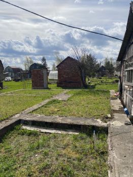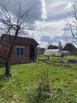 На участке есть две постройки: беседка из красного кирпича и летний щитовой домик.