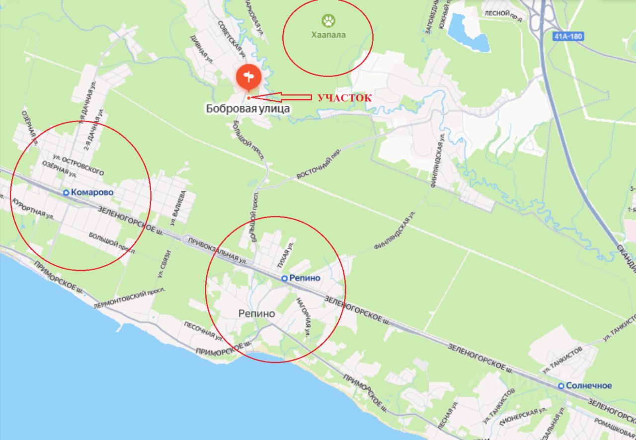 -3 км до железнодорожной станции Репино, 12 км до ЗСД;