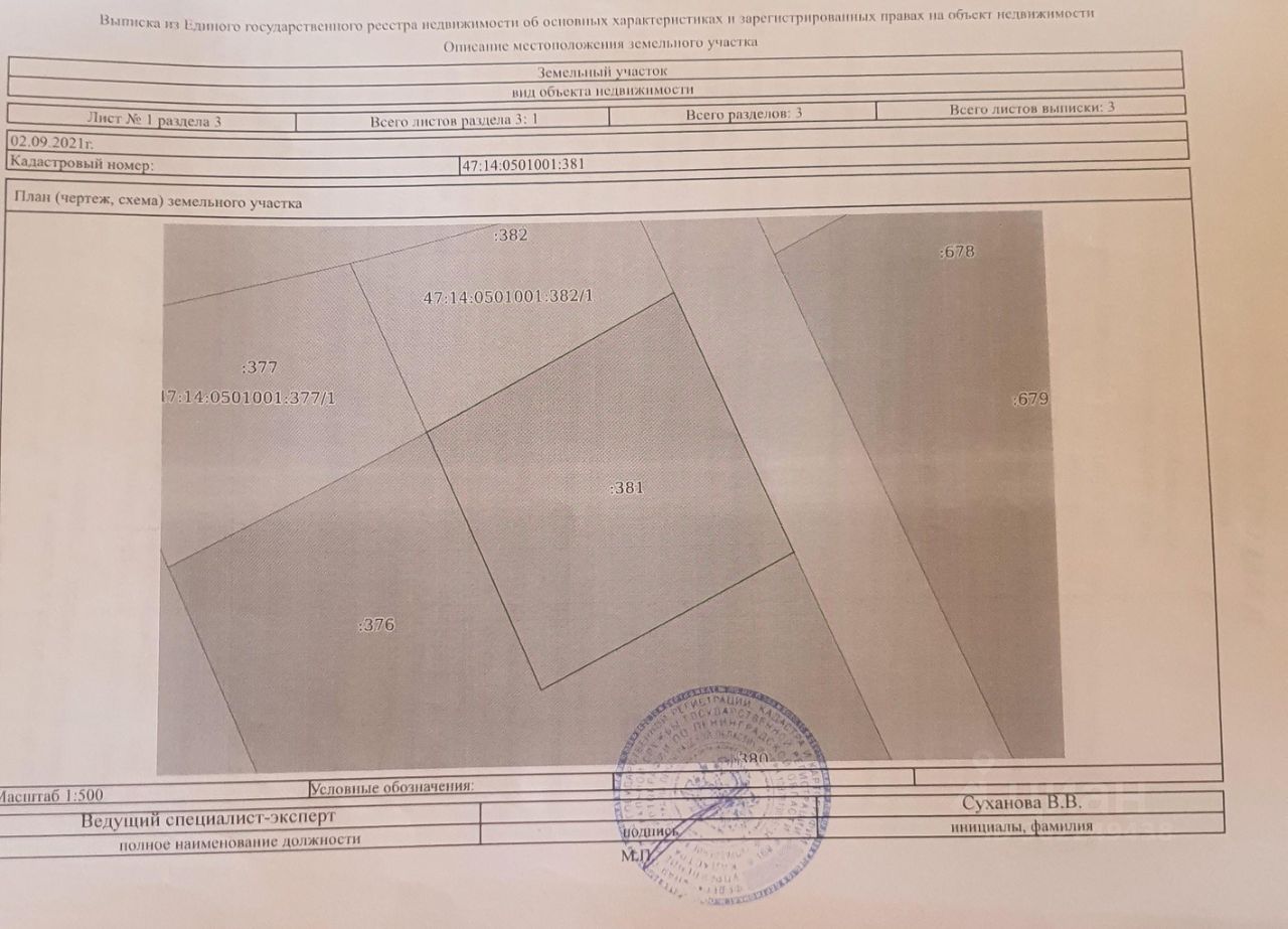 Кадастровый номер участка 47:14:0501001:*** указал продавец