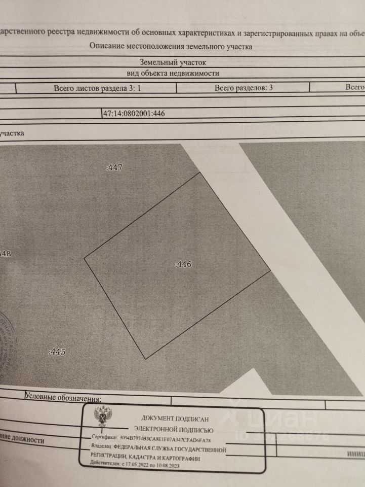 Кадастровый номер участка 47:14:0802001:*** указал продавец