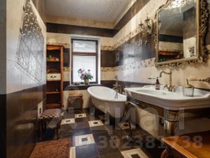 Нижний этаж жилой части дома — парадный, его интерьеры выполнены в классическом дворцовом стиле. Здесь расположились основная кухня, столовая, гостиная, кабинет, библиотека,а также комната для гостей. Мебель известного итальянского бренда Artе Aredo изготовлена специально для этого особняка. Фасады консолей и шкафчиков в гостиной — из корня акации, с подбором натуральной текстуры материала в тонкий симметричный узор.