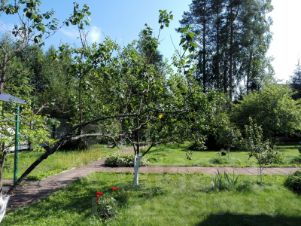 Участок сухой, ровный, ухоженный с каменными дорожками. По периметру идет дренажная система. Посажены плодовые деревья и ягодные кустарники.