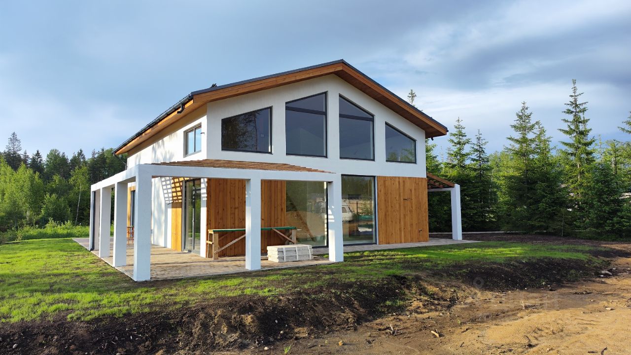 Идеальный загородный дом на ровном сухом участке площадью 15 соток: красивый, теплый, построенный из газобетона на утепленной шведской плите.