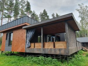 Дом построен по каркасной технологии, отделка предчистовая. Большой участок 12 соток, окружен лесом. Общая площадь дома 187 кв. м., из них терраса 67 кв. м., фундамент - винтовые сваи, с двойной обвязкой брусом. Отопление- электрокотел, по первому этажу идет теплый водяной пол. Водоснабжение - скважина.