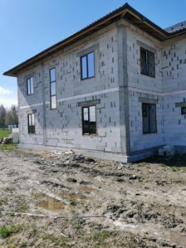 Сделанна электрика и отштукатурины стены как внутри, так и снаружи