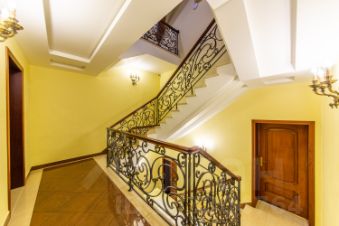 По главной мраморной лестнице вы попадете на третий этаж, где найдете домашний кинотеатр, гостевую спальню и прачечную.