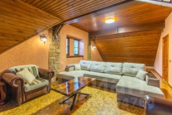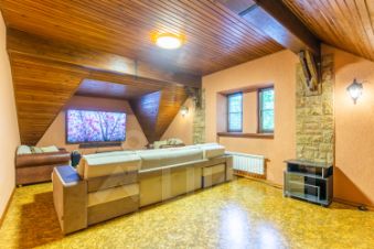 Второй этаж: мастер спальня с удобной гардеробной и собственной ванной комнатой, а также две детские комнаты, спортивный зал, сауна на дровах, гостевая спальня, и отдельный с/у.