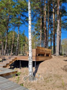 Участок расположен на второй линии от залива - до пляжа 3 минуты пешком, при этом вид на залив с участка открывается великолепный (благодаря особенностям рельефа местности).