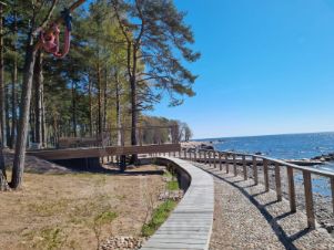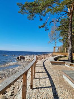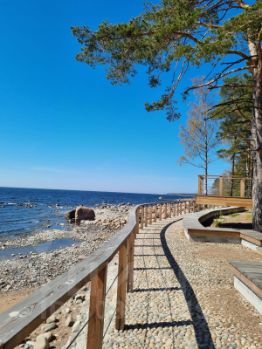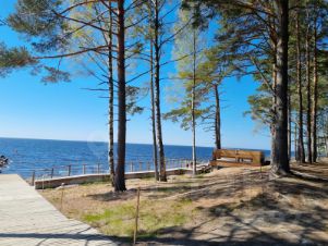 Расположение участка действительно уникальное - отличная дорога от города, рядом пляж (очень красивый и недоступен для прохода жителей соседних посёлков). Оборудована прогулочная набережная для жителей посёлка.