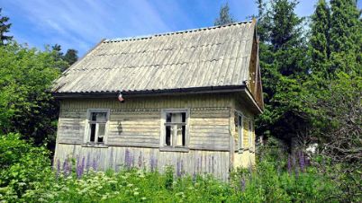 Сделан въезд для машины, под парковку положены две плиты. Есть две хозпостройки (скорее всего под снос). Колодец из четырех колец (полный). Растут яблони, слива, облепиха. Рядом магазин.