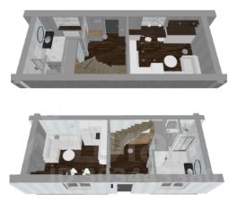 Этот таунхаус как чистый холст для творчества, подойдет тем, кто не ищет готовых решений и хочет создать дизайн по своему вкусу.
