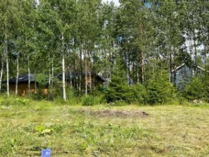 Участок ровный, самое главное - сухой. Имеются деревья на самом участке.