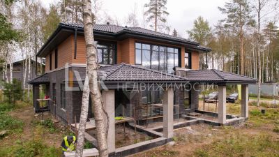 Новый каменный дом, в элитном коттеджном поселке Репино Парк, без торфа, с вековыми соснами, 4 квартал поселка, номер 593! Не проездное место, практически тупик, рядом лес 1 категории и парк 10 га. Полный комплект городских коммуникаций: магистральный газ, электричество, водоснабжение. Локальное очистное сооружение! Поселок с инфраструктурой: озеро, огромный парк, спортивные и детские площадки, теннистный корт. Участок правильной формы, высокий, сухой, грунт-супесь, не требует больших вложений в ландшафт! На участке красивые вековые сосны. Срок полной сдачи дома- 15-25 августа 2024 года!! Газобетонный дом с 2-мя полноценными этажами, элитные окна (пластиковые окна, профиль 82 мм). Кровля- Цементно-песчаная Браас (Германия). В стоимость входит вся наружная отделка (отделка фасада клинкерным кирпичом и планкеном из лиственницы; лобовые и карнизные доски, подшивы свесов кровли, водосточная система И так далее). В стоимость входят все подготовительные работы, устройство заезда, дренирование участка, а так же подготовительные работы под чистовую отделку. Гарантия на все выполненные работы- 10 лет! Возможно изменение во внутреннюю планировку дома! Специальное предложение на внутреннюю отделку дома, ландшафтные работы и фасадное ограждение! 5 минут езды от Финского залива, 5 минут езды от Репино и Солнечного! 10-15 минут езды от ресторанов на финском заливе, 10-15 минут до яхт-клуба! 20 минут езды до Петроградки и Приморского проспекта, 30-35 минут езды до центра города! Есть возможность приобретения дома по другим проектам нашей компании, в данном коттеджном поселке целый концептуальный квартал в единой стилистике и цветовой гамме! Есть возможность посмотреть вживую на этот и другие проекты, на разной стадии строительства, с различными вариациями отделки! Менеджеры нашей компании проводят экскурсии в поселок и по строящимся обьектам 7 дней в неделю!