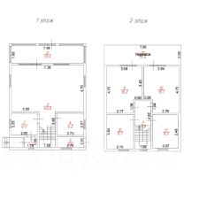 1 этаж: большая кухня-гостиная, туалет с душевой, прихожая, тамбур, тех помещение с отдельным входом, застекленная терраса.