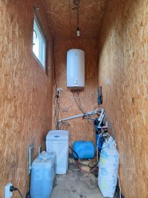 Дом построен из сип панелей на сваях, для круглогодичного проживания. Канализация локальная (кольца), скважина, отопление инфракрасное и камин, газ по меже. Трехфазное подключение электричества с напряжением 380 В. Проводной интернет.
