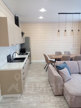 В доме кухня-гостинная ~ 27 кв.м с панорамным остеклением. На просторной кухне удобно готовить даже в четыре руки и хватит места для посиделок.