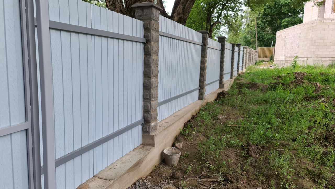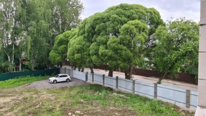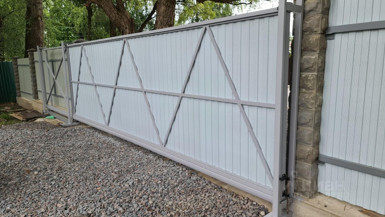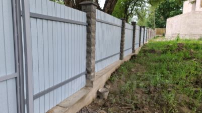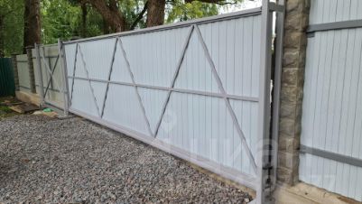 Участок обнесен забором с двумя въездами (откатные и распашные ворота) + калитка.