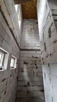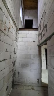 Двухэтажный жилой дом 292 м2 из газобетона без отделки на ленточном фундаменте.