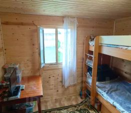На участке стоит детская площадка, беседка. Из посадок: клубника , черная смородина , слива.