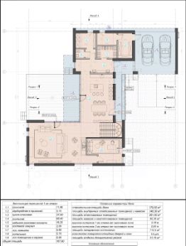 Дом разделен на три функциональные зоны: спальную, жилую и техническую. Техническая часть включает гараж на два автомобиля, котельную, кладовую и помещение для персонала. Жилая зона предлагает просторную кухню-столовую-гостиную (98 м²), кабинет и спа-зону. Спальная зона включает главную спальню с гардеробной и ванной, две дополнительные спальни с отдельными санузлами и ванной, а также великолепный вид на сад и сосновый лес.