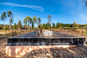 Фундамент представляет собой монолитную железобетонную теплоизолированную плиту (марка бетона В30), с заложенными коммуникациями, контуром заземления, дренажной системой и каналами для прокладки электрических кабелей. Прозрачные стены первого и второго этажей оформлены двухкамерными стеклопакетами, заполненными аргоном, с закаленным и солнцезащитным стеклом. Глухие стены выполнены из газобетона толщиной 400 мм, а крыша — монолитная с наплавляемой кровлей.