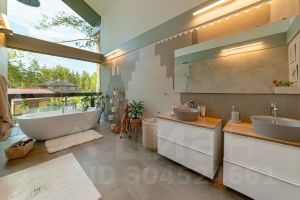 Дом полностью меблирован. Ремонт и отделка выполнены из дорогих и современных материалов: полы первого этажа из крупноформатного керамогранита последнего поколения, полы второго этажа паркетная доска, сан.узлы крупноформатный керамогранит. Кухня производства Германии LEICHT оборудована техникой NEFF, столешница выполнена из керамики фирмы DEKTON (Испания), холодильник с винным шкафом Liebherr. Мягкая мебель итальянской марки Natuzzi.