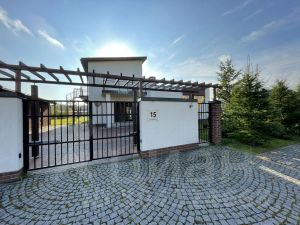 Коттедж площадью 410 кв.м. + гаражный комплекс 94 кв.м. построеын с использованием монолитного железобетонного каркаса с заполнением газобетоном. Установлены деревянные стеклопакеты. Материал крыши - фальц.