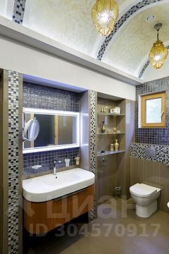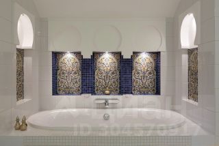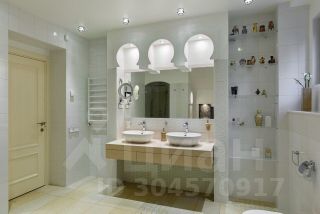 Отделка стен на двух этажах (кроме ванных комнат) авторская декоративная штукатурка. Стены ванных комнат отделаны кафелем, включая авторские панно, итальянского производства. Отделка сауны - канадский кедр.