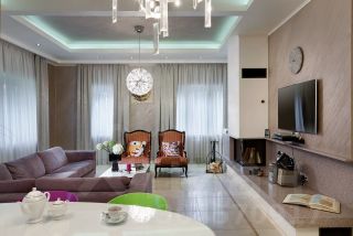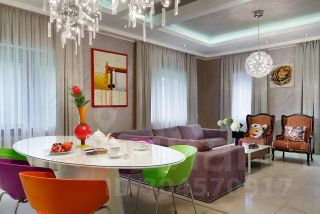 Все люстры дизайнерского исполнения западных производителей. Точечные светильники фирм Dоnоluх и Nоvоtесh . Также на участке возведён гостевой кирпичный дом площадью 127 кв.метров , в котором обустроены гостиная , 2 спальни , детская , санузел с сауной , котельная . Для различных потребностей на участке построен хозяйственный домик . Машины паркуются под навесом у дома .