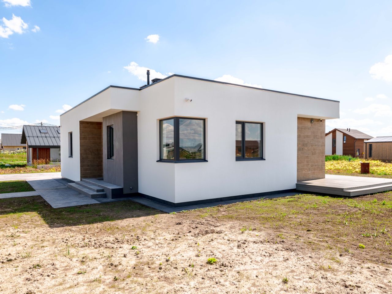 - Фундамент дома и плоская кровля представлены массивными железобетонными плитами;