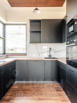 Дополнительно коттедж укомплектован кухонной мебелью, выполненной под заказ, и бытовой техникой Bosch.