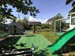 Забор деревянный, ворота откатные электрические. На территории: колодец (7 колец), автономная канализация (аэрационный септик глубокой биологической очистки), небольшой сарай, небольшой гостевой дом, детская площадка, детский домик, качели, газон, большая ель перед домом, 3 яблони, 3 кедра, каштан, множество сосен и декоративных кустарников, стоянка для автомобилей и дорожки из щебенки.