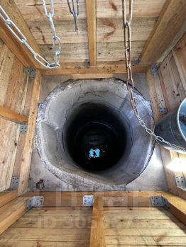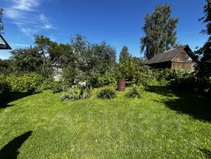 На участке чистый колодец с питьевой водой. Растут вишни, яблоки, малина, цветы, несколько грядок. Территория огорожена железным забором.