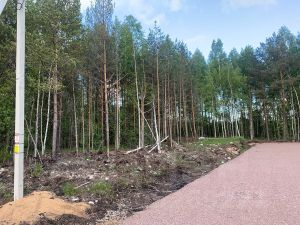 На всех участках произрастают сосны разной высоты, участок ровный и сухой. Сделаны дренажные канавы, отсыпана хорошая дорога с гранитной крошкой.