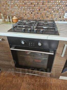 Первый этаж тёплые полы. На кухне варочная поверхность и духовой шкаф Samsung, посудомоечная машина Bosch, два окна, кухня очень светлая. В гостиной огромный угловой диван, кресло, несколько уровней освещения, рабочая зона с компьютерным столом.