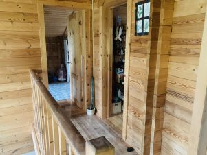 Жилой дом общей площадью 144 м?, двухэтажный. Первый этаж: кухня-гостиная 29 м?, комната 11кв.м, санузел с душевой 7,4 м? и сауной 4,7 ,м? оборудованной финской печью Harvia, выход на просторную террасу, красивый удобный лестничный проем со вторым светом. Второй этаж: три спальни (9 м?+13 м?+17м?), две из которых с выходом на симпатичные балкончики, санузел с ванной 3,6 м?. В доме вода из собственной скважины глубиной 33 м, а так же на территории участка колодец с технической водой для полива. Участок 991кв.м - ровный, ухоженный, в окружении сосен, елей и березок.