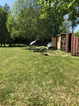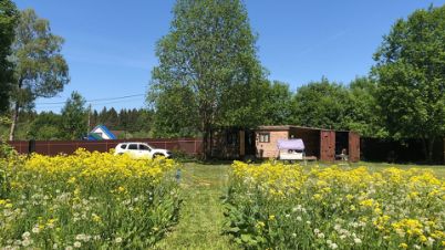 Посажены две яблони, кусты жимолости, облепиха и шикарный малинник, очень крупная и вкусная малина. Есть вагончик где можно переночевать — диван, умывальник с нагревателем, кухонные шкафчики. Также стоит контейнер для хранения инвентаря.