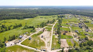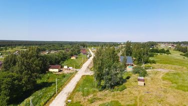 В поселке проложены подъездные и внутренние дороги. По границе поселка и участков растут березы и хвойные деревья.