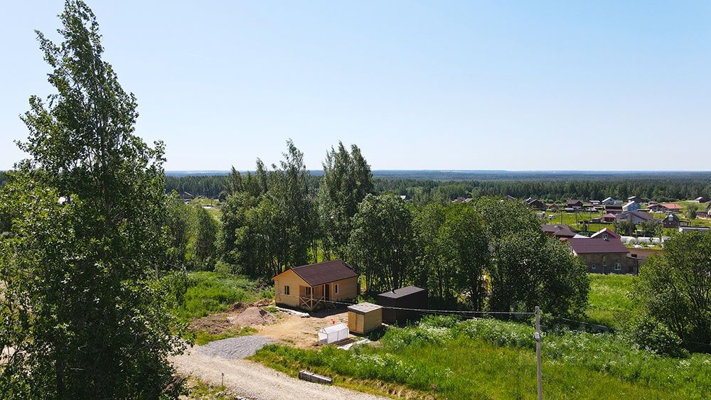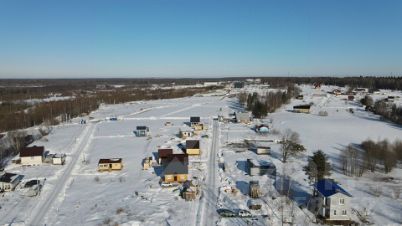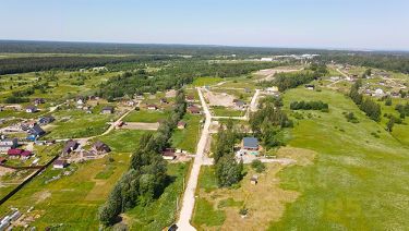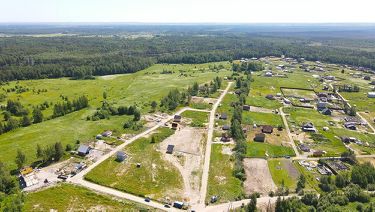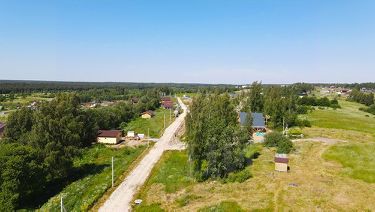 В поселке проложены подъездные и внутренние дороги. По границе поселка и участков растут березы и хвойные деревья.