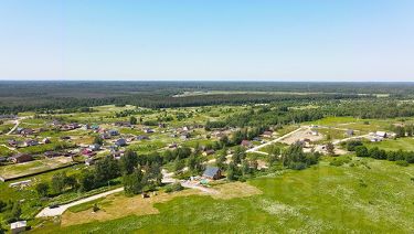 В поселке проложены подъездные и внутренние дороги. По границе поселка и участков растут березы и хвойные деревья.