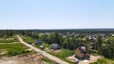 В поселке проложены подъездные и внутренние дороги. По границе поселка и участков растут березы и хвойные деревья.