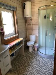 Электричество - 5 кВт, вода (из колодца) - заведена в дом, канализация - ЛОС (станция биоочистки Топас)+летний туалет, теплоснабжение - электроконвекторы + камин (тепловая мощность - 12 кВт).