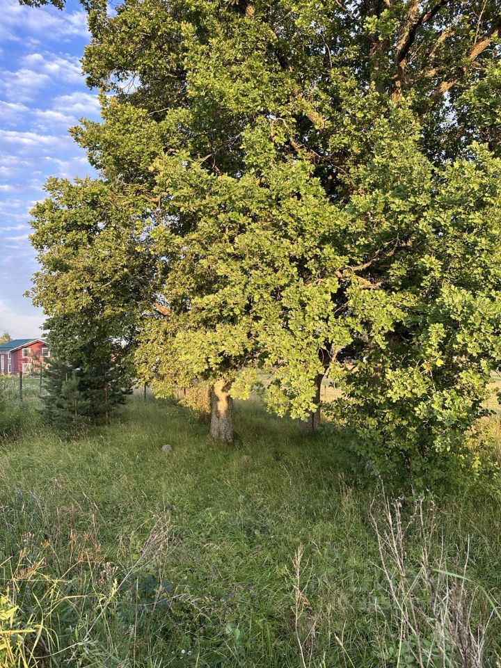 Территорию участка украшают два вековых дуба, липа и молодая сосна, у забора есть несколько кустов черной смородины. Пробурена скважина, дающая хороший напор чистой воды, подключено электричество мощностью 15 кВт. Есть возможность провести природный газ: поселок подключен к газопроводу. Для хозяйственных нужд есть утепленная деревянная бытовка.