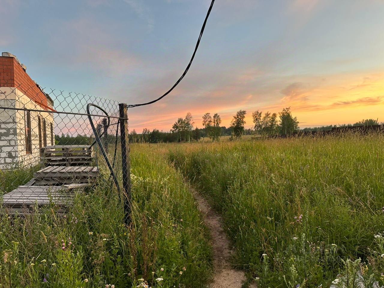 Продается участок с недостроенным домом в деревне Кабацкое. Участок ИЖС, площадью 17 соток, расположен на небольшой естественной возвышенности и огорожен забором. С двух сторон к нему примыкают участки соседей, с третьей --- проселочная дорога, с которой организован въезд, пригодный в том числе и для тяжелых машин. Четвертая, самая протяженная граница домовладения, отделяет его от обширного луга, плавно спускающегося на юго-запад и окаймленного березовой рощей на горизонте. Вид на луг очень живописен, он составляет особенную, уникальную черту участка, создавая ощущения покоя и простора.