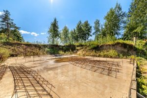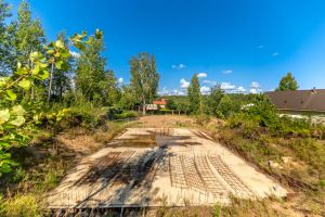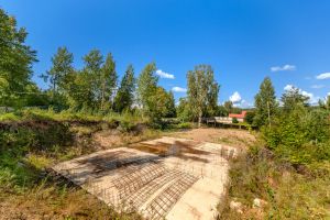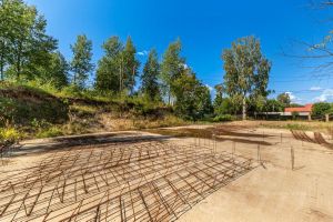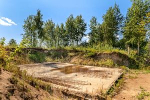 Учaсток ровный, расчищен от мелкой растительности, имеется капитальный фундамент монолитная плита и проект дома.