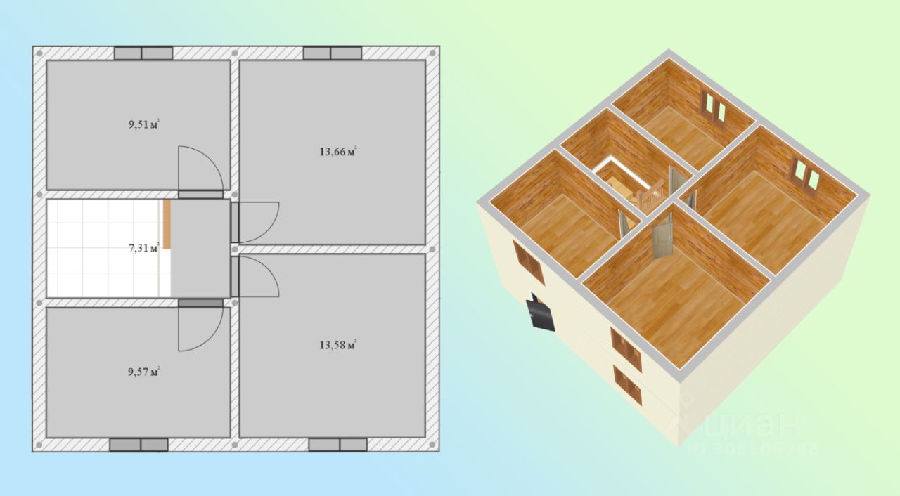 Площадь дома  110 кв.м., 4 спальни, большая гостиная, кухня и санузел.
