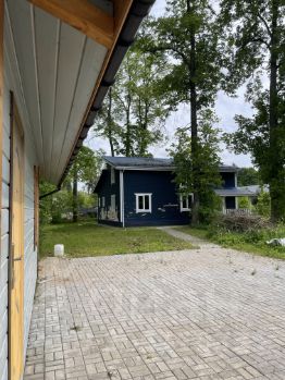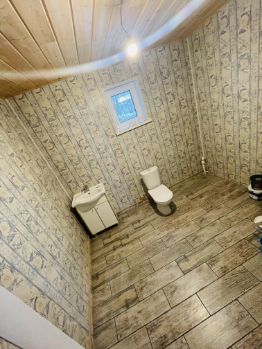 В данный момент имеются повреждения красочного слоя фасада из-за некачественной краски; мы попытались кёрхером снять краску , результат неважный. Предлагаем закрыть фасад любым сайдингом или заменить обшивку - это на усмотрение покупателя, в стоимость дома не входит.