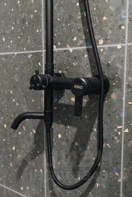 * отопление - тёплые полы на первом этаже, на втором выведены трубы под батареи (трубы немецкого производителя)